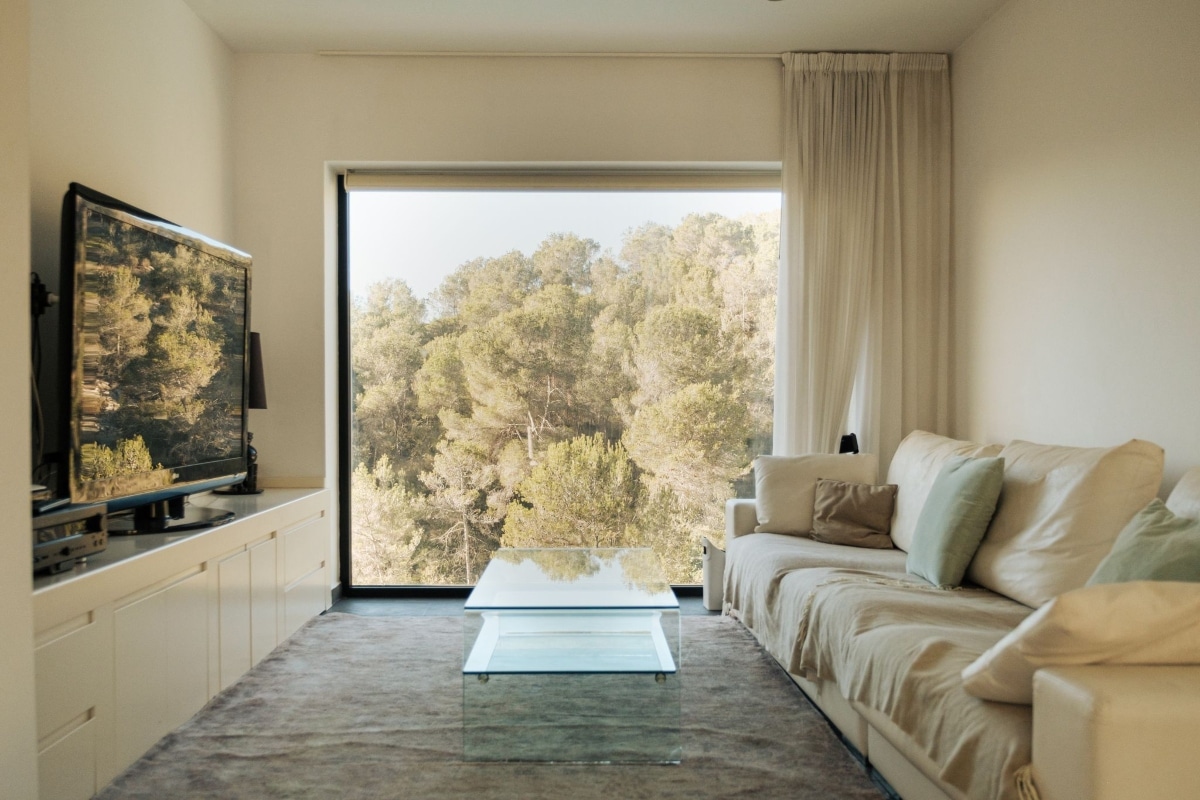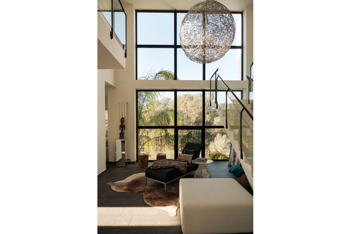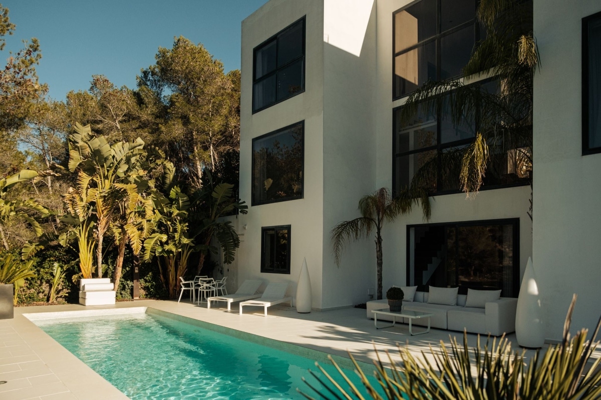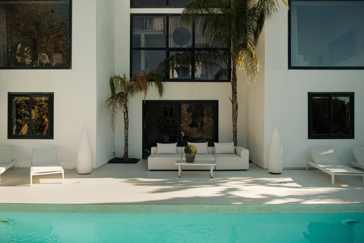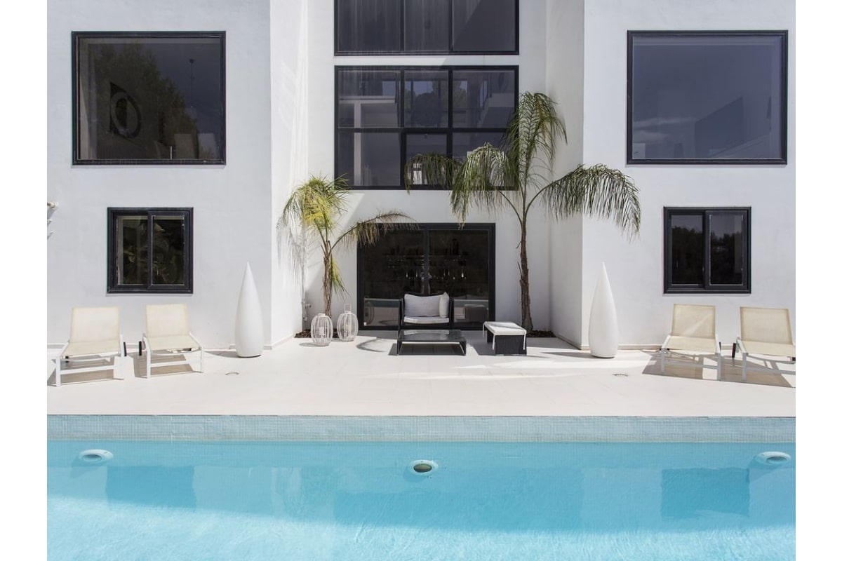 Villa Can Suria tiene capacidad para hasta 11 huéspedes distribuidos en seis dormitorios de precioso diseño, que combinan la arquitectura moderna con un entorno cálido y natural. Los ventanales de suelo a techo, las líneas limpias y el mobiliario de diseño crean un ambiente luminoso y diáfano que fluye a la perfección entre la vida interior y exterior.