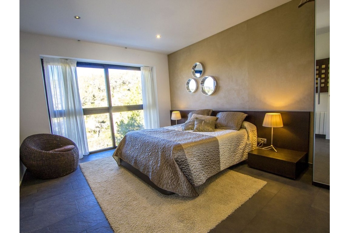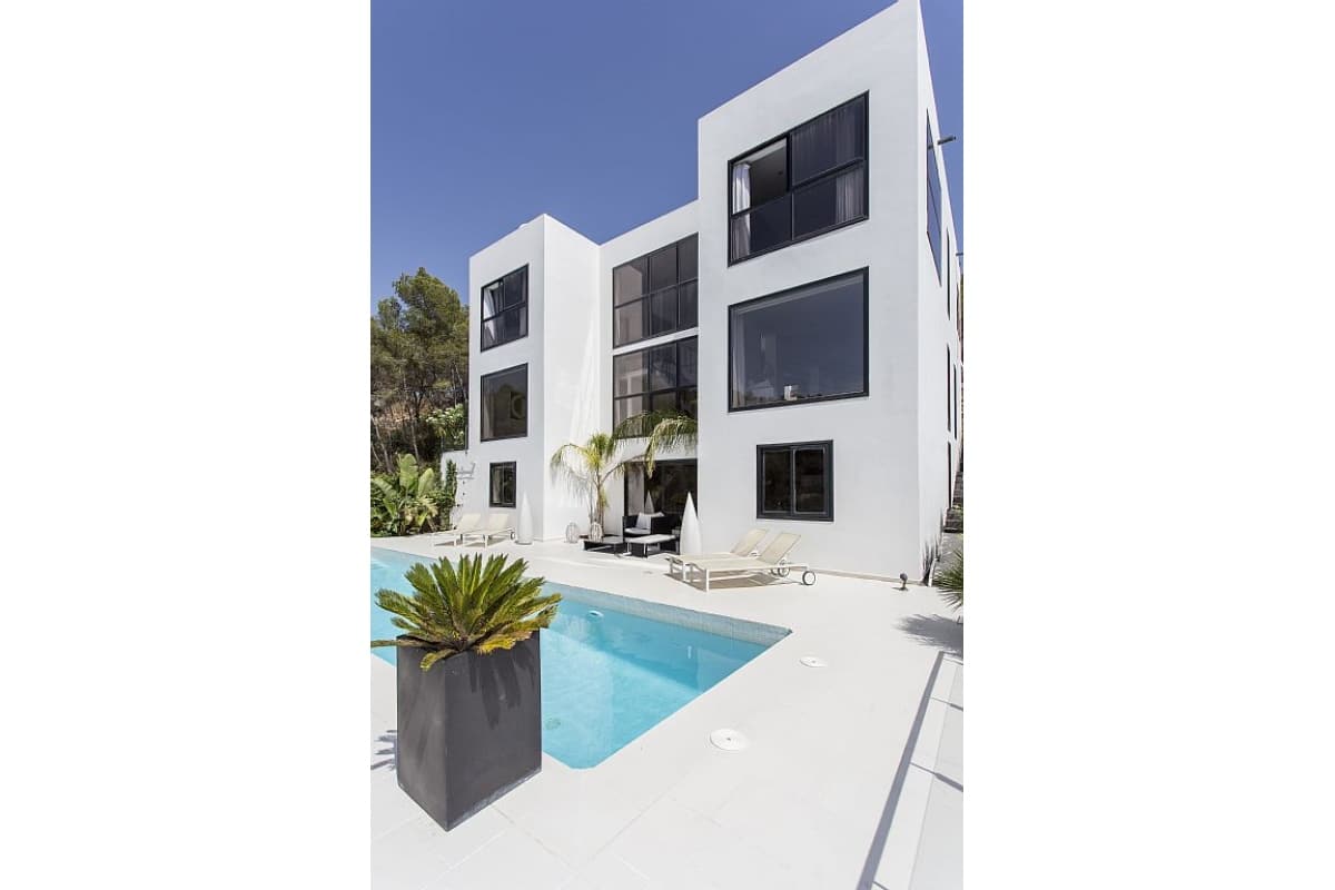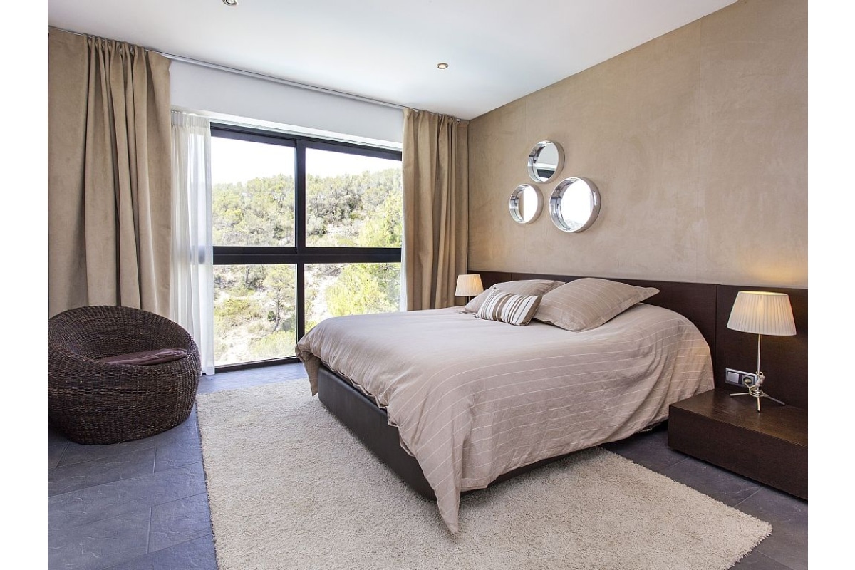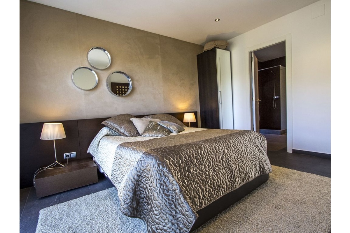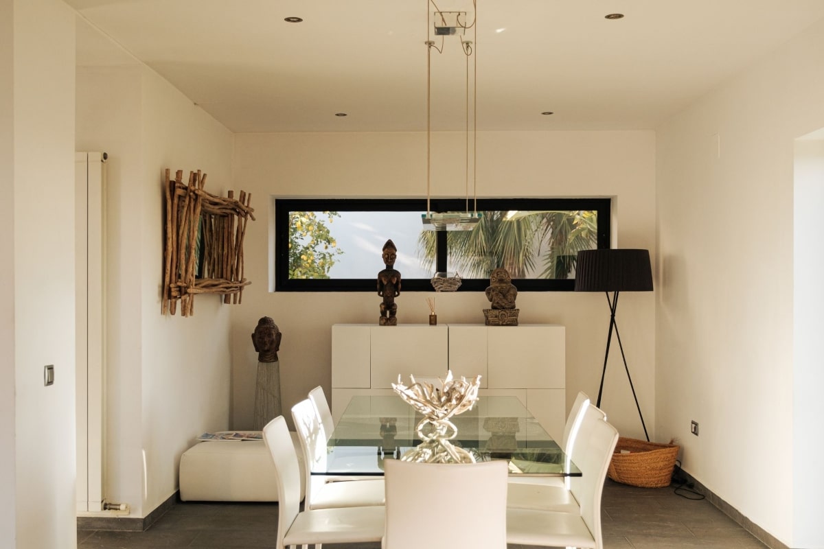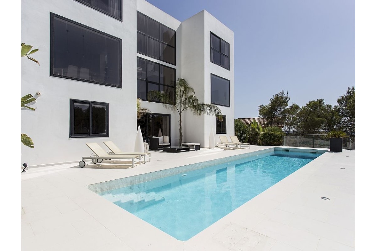 Villa Can Suria tiene capacidad para hasta 11 huéspedes distribuidos en seis dormitorios de precioso diseño, que combinan la arquitectura moderna con un entorno cálido y natural. Los ventanales de suelo a techo, las líneas limpias y el mobiliario de diseño crean un ambiente luminoso y diáfano que fluye a la perfección entre la vida interior y exterior.