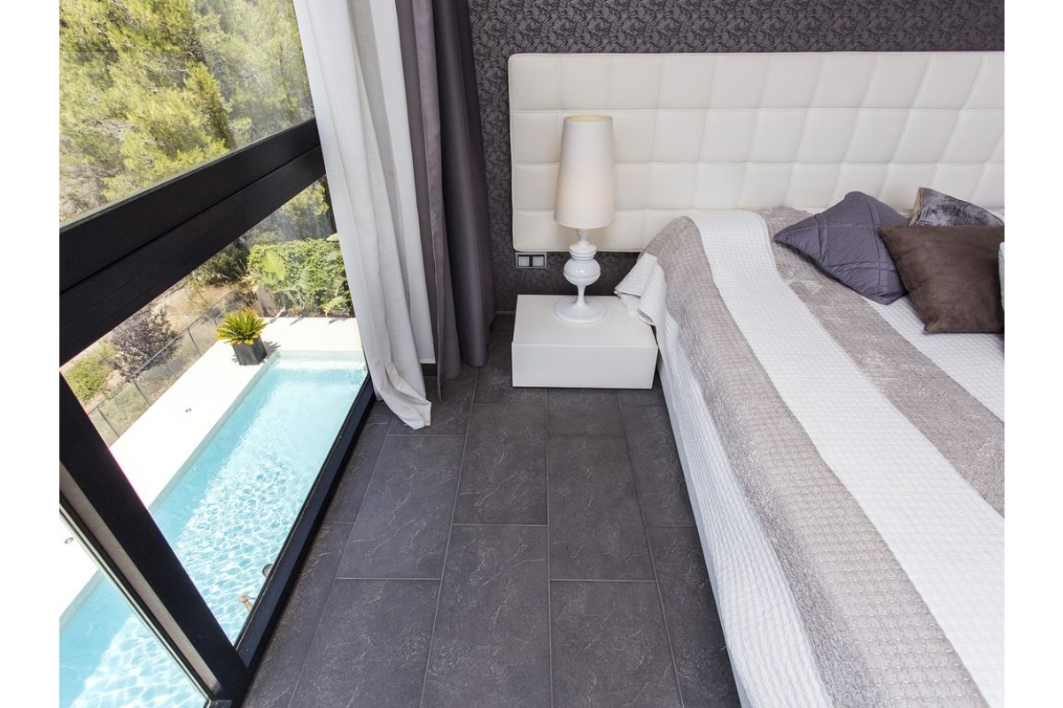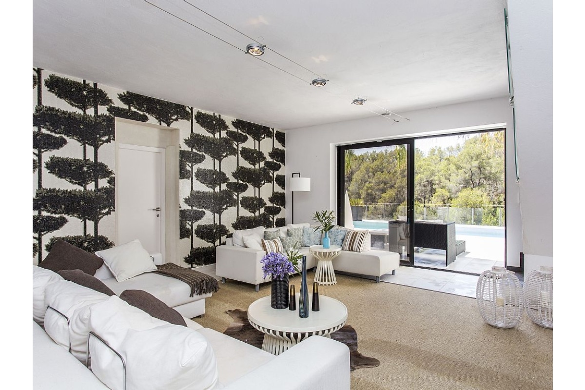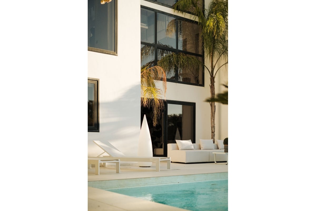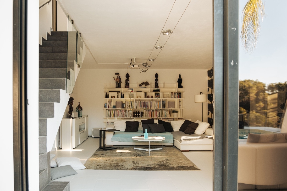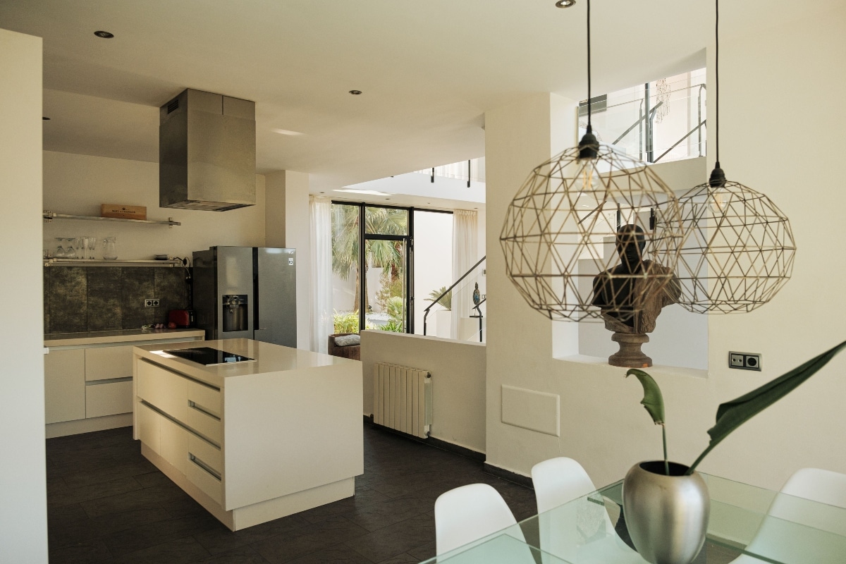 Villa Can Suria tiene capacidad para hasta 11 huéspedes distribuidos en seis dormitorios de precioso diseño, que combinan la arquitectura moderna con un entorno cálido y natural. Los ventanales de suelo a techo, las líneas limpias y el mobiliario de diseño crean un ambiente luminoso y diáfano que fluye a la perfección entre la vida interior y exterior.