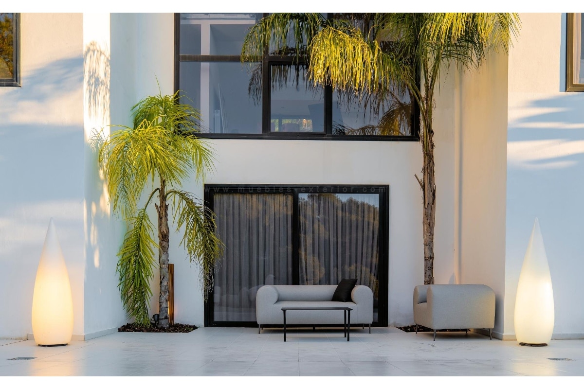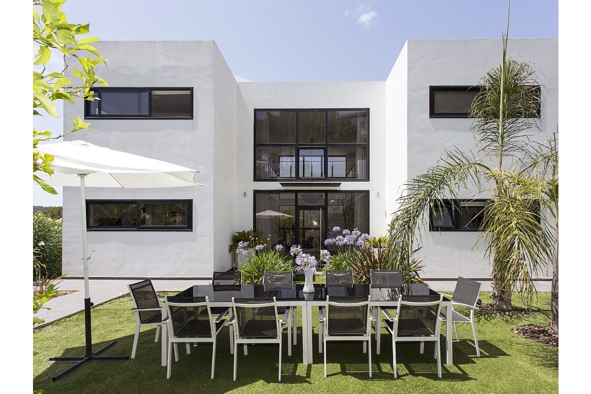 En el exterior, la villa cobra vida de verdad. Preciosas vistas y jardines rodean la propiedad, ofreciendo un lugar para descansar, cenar y relajarse.
